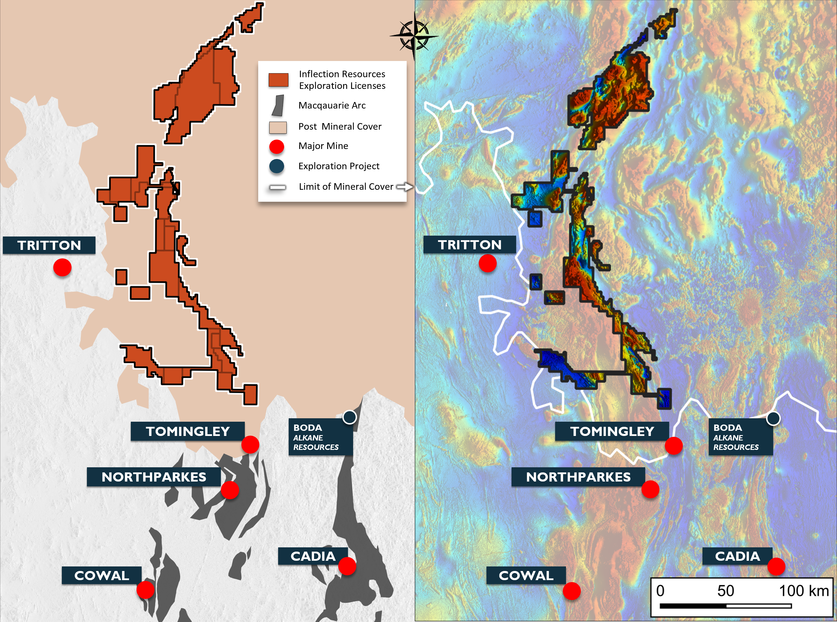 Inflection Resources is the largest owner of exploration licenses in the northern Macquarie Arc, amounting to a district-scale land position of over 7,000 km².